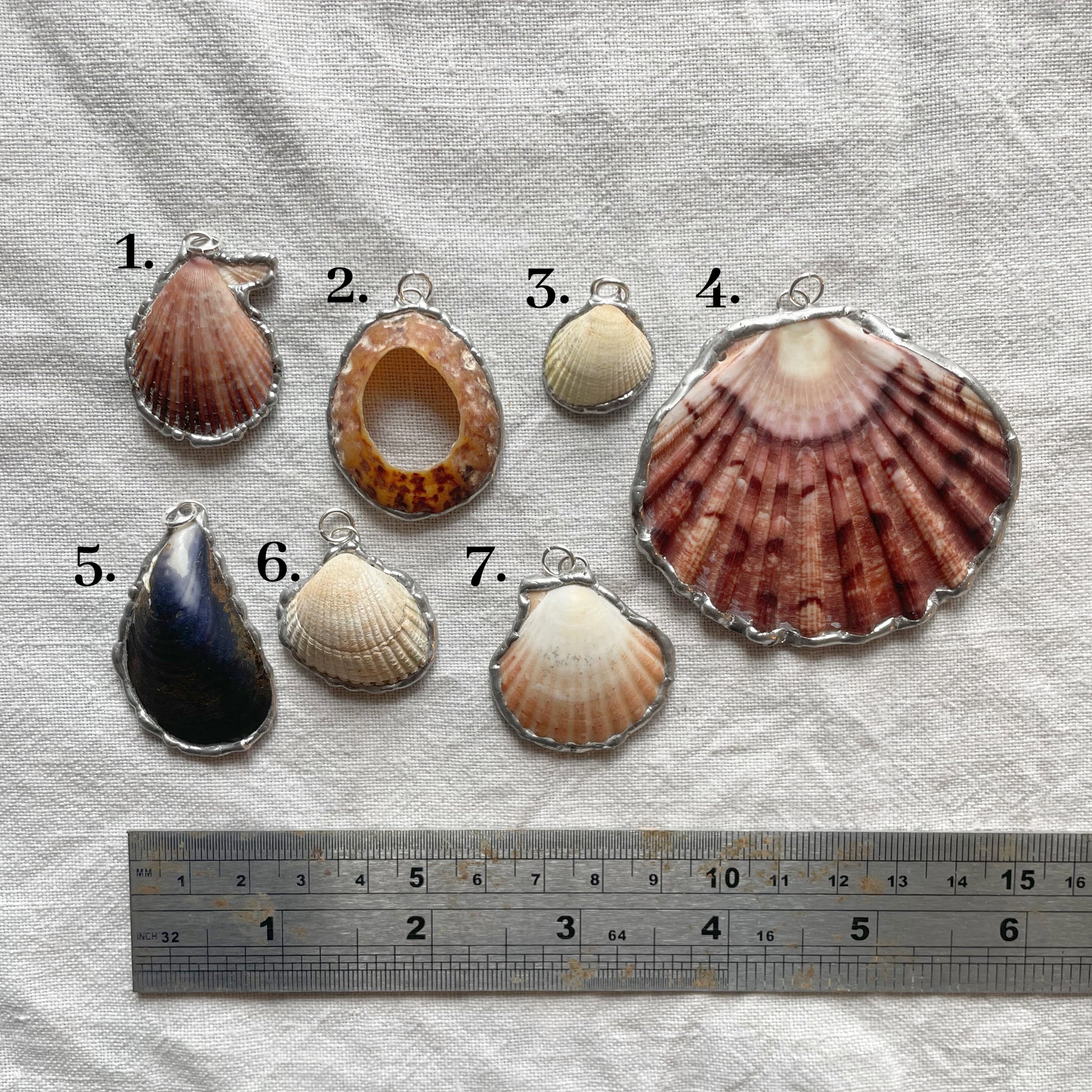 A shell found on a south coast beach, encased in silver mix solder and a sterling silver jump ring.